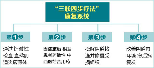三联四步综合灭菌疗法在治疗阴道炎的同时,能增强病灶部位的新陈代谢功能,促进血液循环,增加毛细血管的通透性,加速患处的吸收,恢复阴道酸碱平衡,松解粘连并修复组织。临床最好效果可达到3天治愈阴道炎!